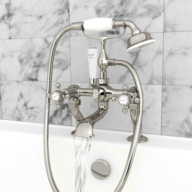The Grosvenor Deck Mounted Bath Shower Mixer combines traditional design with modern functionality. Available in four classic finishes plus an additional chrome option featuring sleek black accents, it offers versatile style choices to complement any bathroom decor. Designed for easy installation, this mixer delivers precise water control for a comfortable bathing experience. Its robust construction ensures durability and long-lasting performance, making it an expert choice for those seeking both elegance and reliability in their bathroom fixtures.