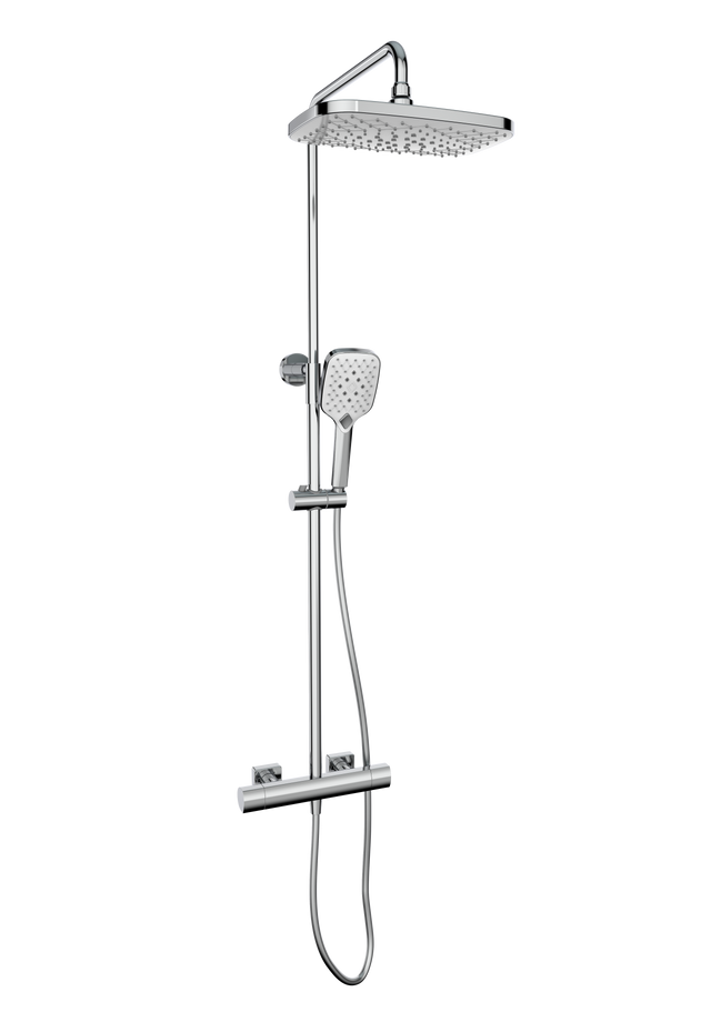 The Kolt Shower with Sliding Handset and Drench Head is engineered for pressures between 1 and 5 bar, ensuring reliable performance in a variety of settings. This WRAS-approved system includes a bar shower valve, fixed drench head, and a sliding handset, combining functionality with a sleek, contemporary design. Its modern aesthetic enhances any bathroom while delivering precise water control and a versatile shower experience. Ideal for those seeking both style and expert-level performance in their shower setup.